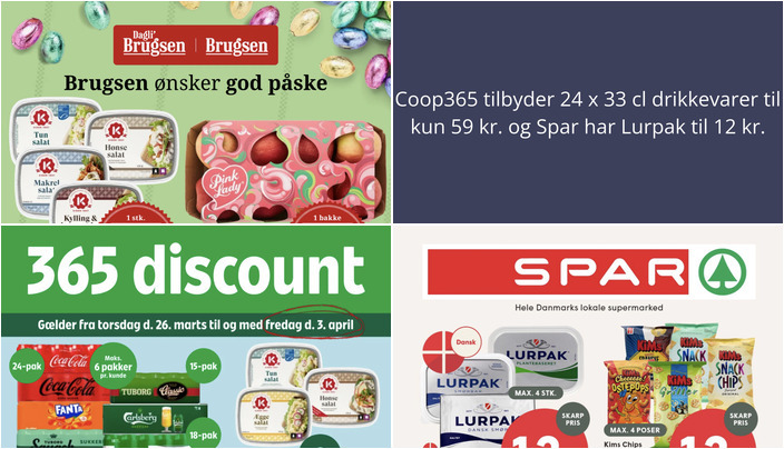 Coop365 har et attraktivt tilbud på drikkevarer i pakker á 15-24 x 33 cl til kun 59 kr. pr. pakke. Bemærk, at der er en begrænsning på maksimalt 6 pakker pr. kunde. Tilbuddet gælder fra torsdag den 26. marts til fredag den 3. april.